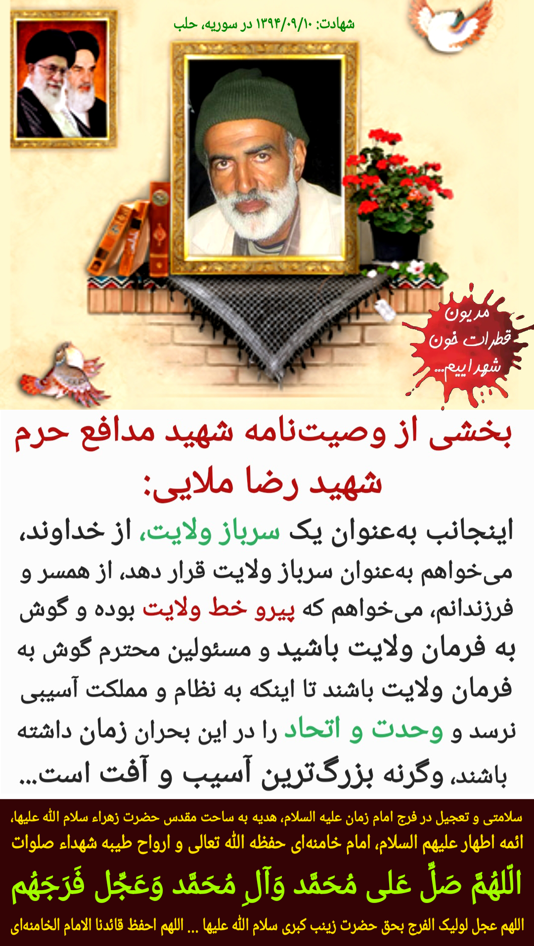 ادامه دهنده خون سیدالشهدا باشید ...