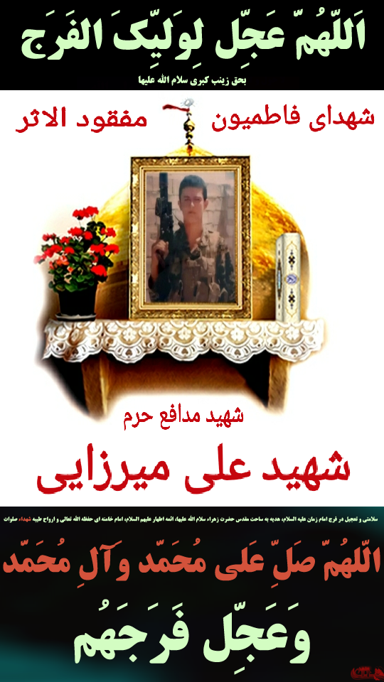 سلامتی و تعجیل در فرج امام زمان علیه السلام، هدیه به ساحت مقدس حضرت زهراء سلام الله علیها، ائمه اطهار علیهم السلام، امام خامنه ای حفظه الله تعالی و ارواح طیبه شهداء صلوات