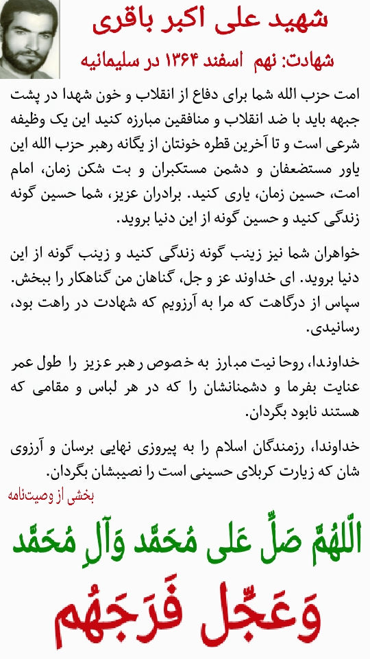 بخشی از وصیتنامه شهید علیاکبر باقری:
