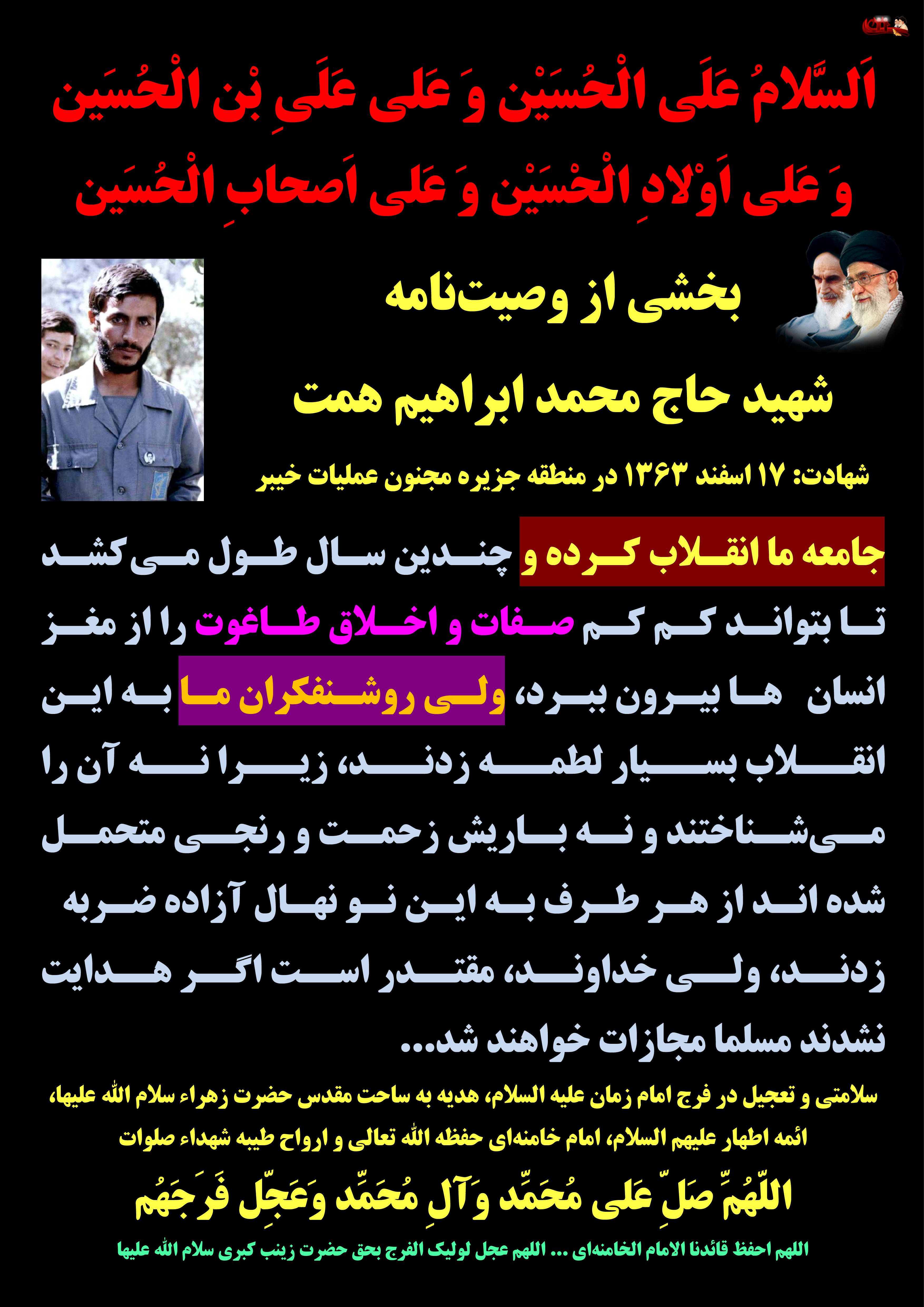 همیشه با دشمنان خط امام مبارزه کنید و منافقین کور دل را از بین ببرید که...