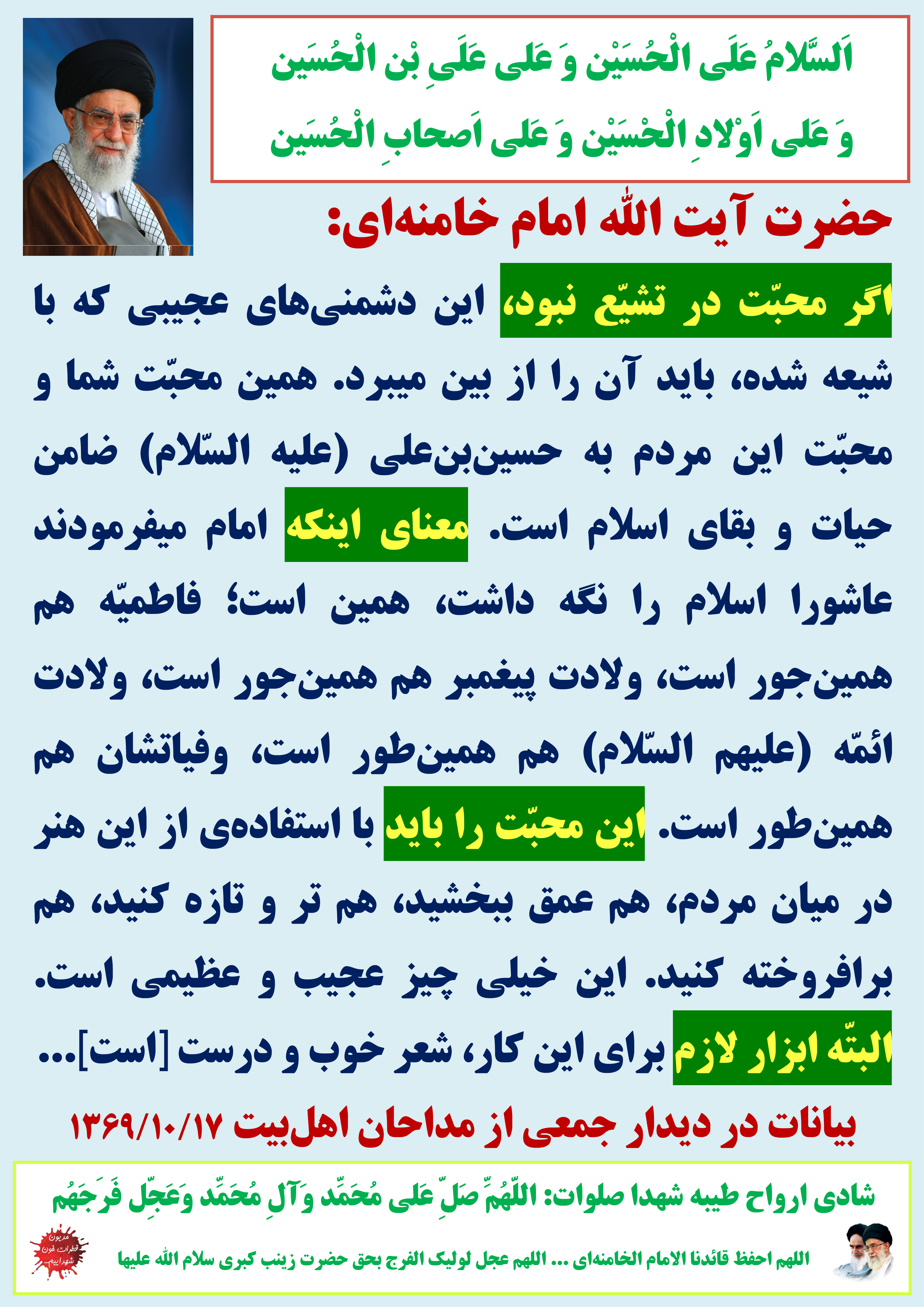 بیانات در دیدار جمعی از مداحان اهلبیت ۱۳۶۹/۱۰/۱۷