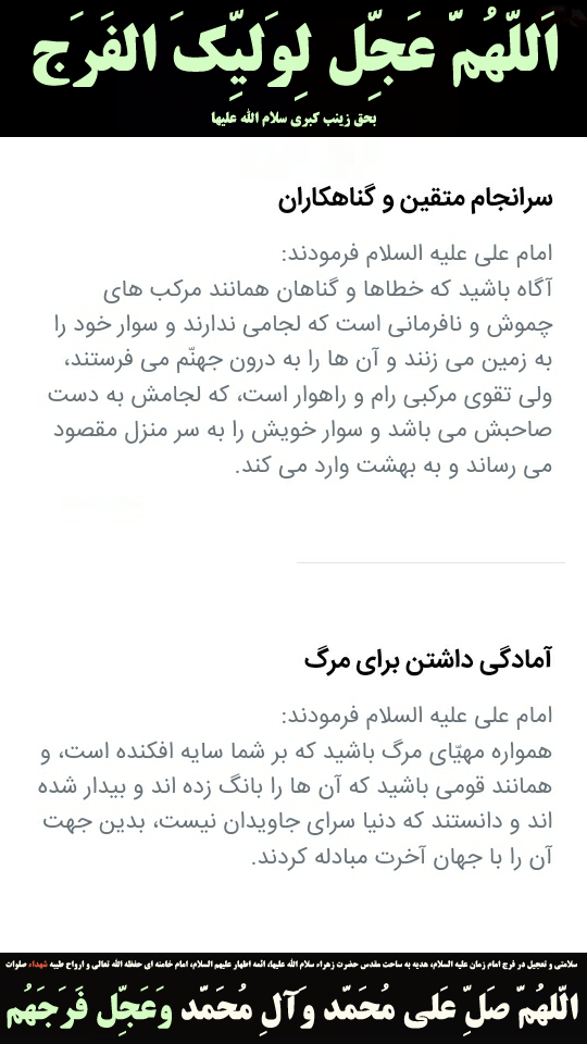منبع: 110 سرمشق از سخنان حضرت على علیه السلام، آیت الله العظمى مکارم شیرازى دام ظله، تهیه و تنظیم: ابوالقاسم علیان نژادى، قم: انتشارات مدرسه امام علی بن ابیطالب علیه السلام،