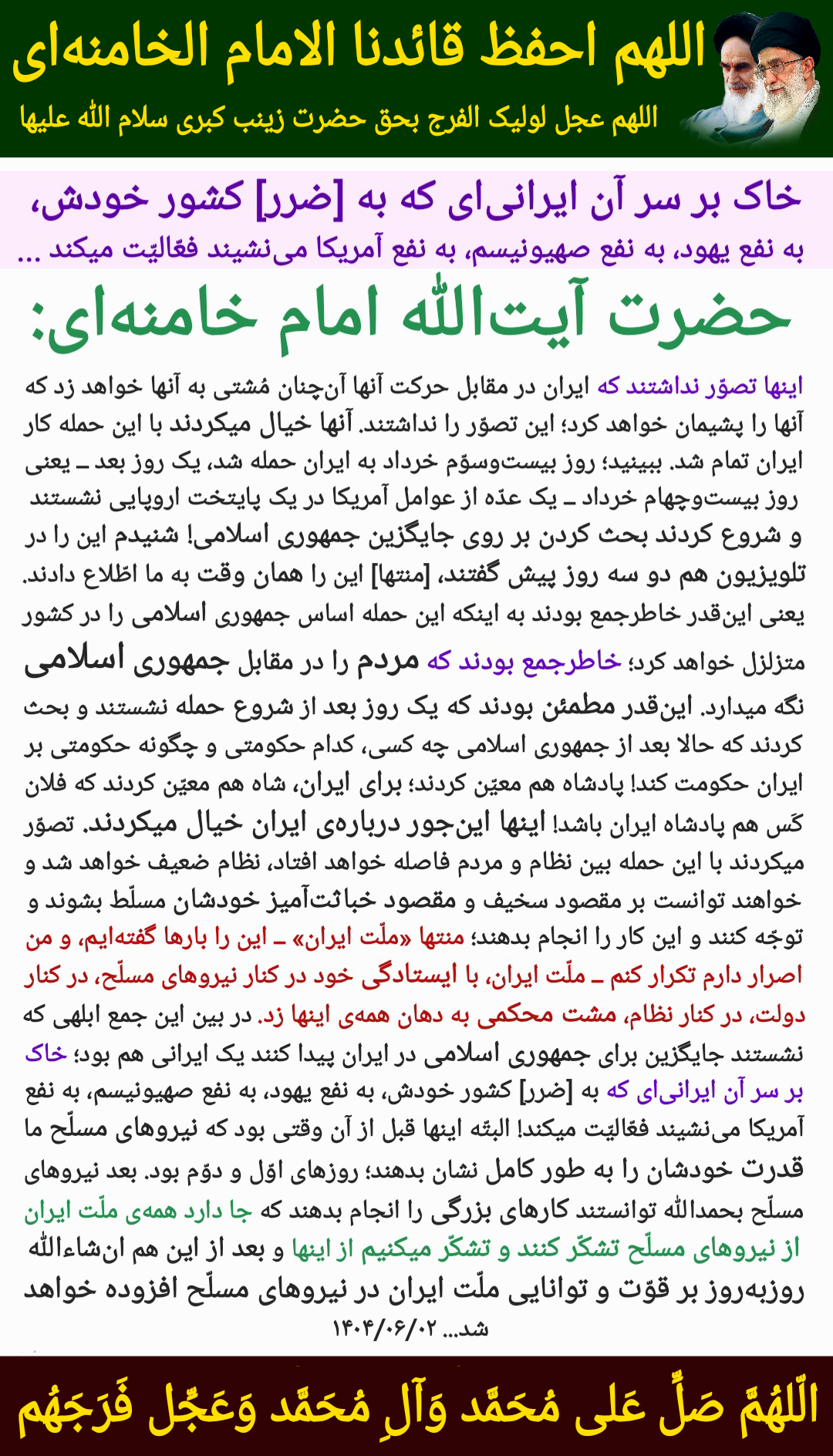 اللهم احفظ قائدنا الامام الخامنهای